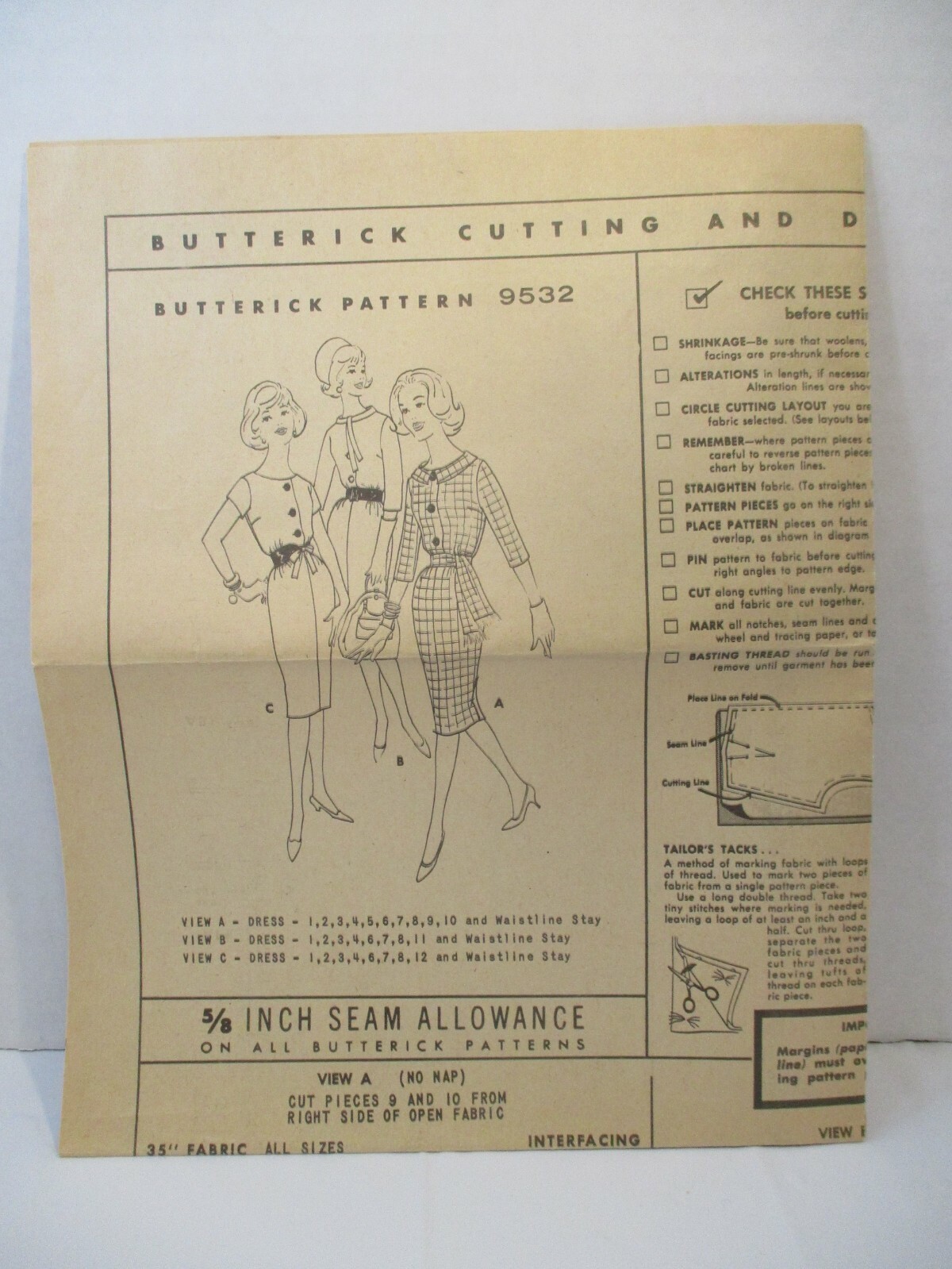 Butterick Pattern 9532 Miss Size 12 Bust 32 Slim Skirted Dress Cut Vintage Ebay